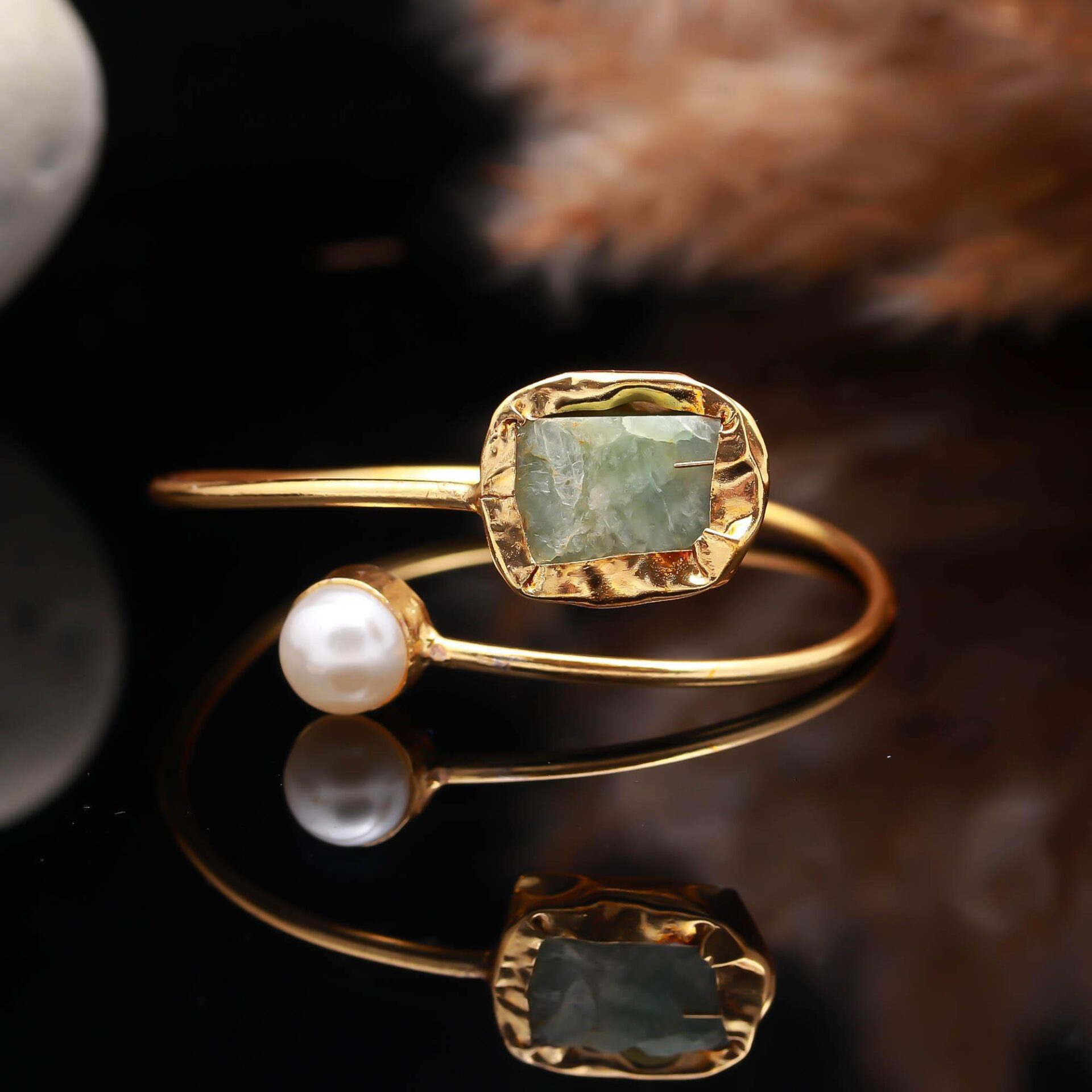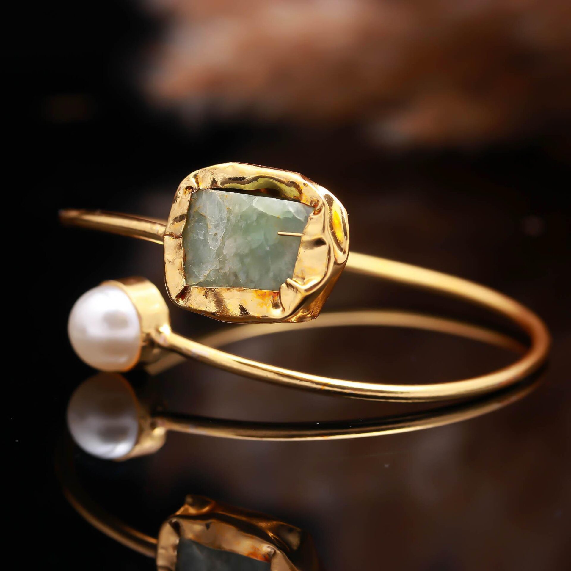The ‘Gaia’ is an adjustable, lightweight cuff designed to be worn effortlessly for an aesthetic look. It is a perfect statement piece that blends the earthy, healing energy of the Amazonite stone with high-fashion appeal.