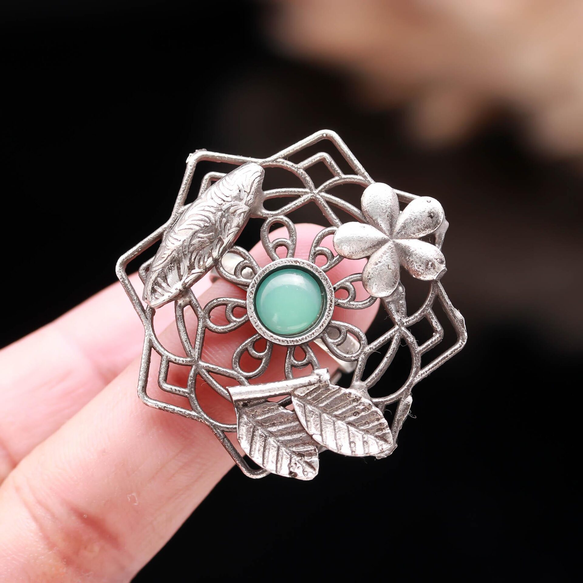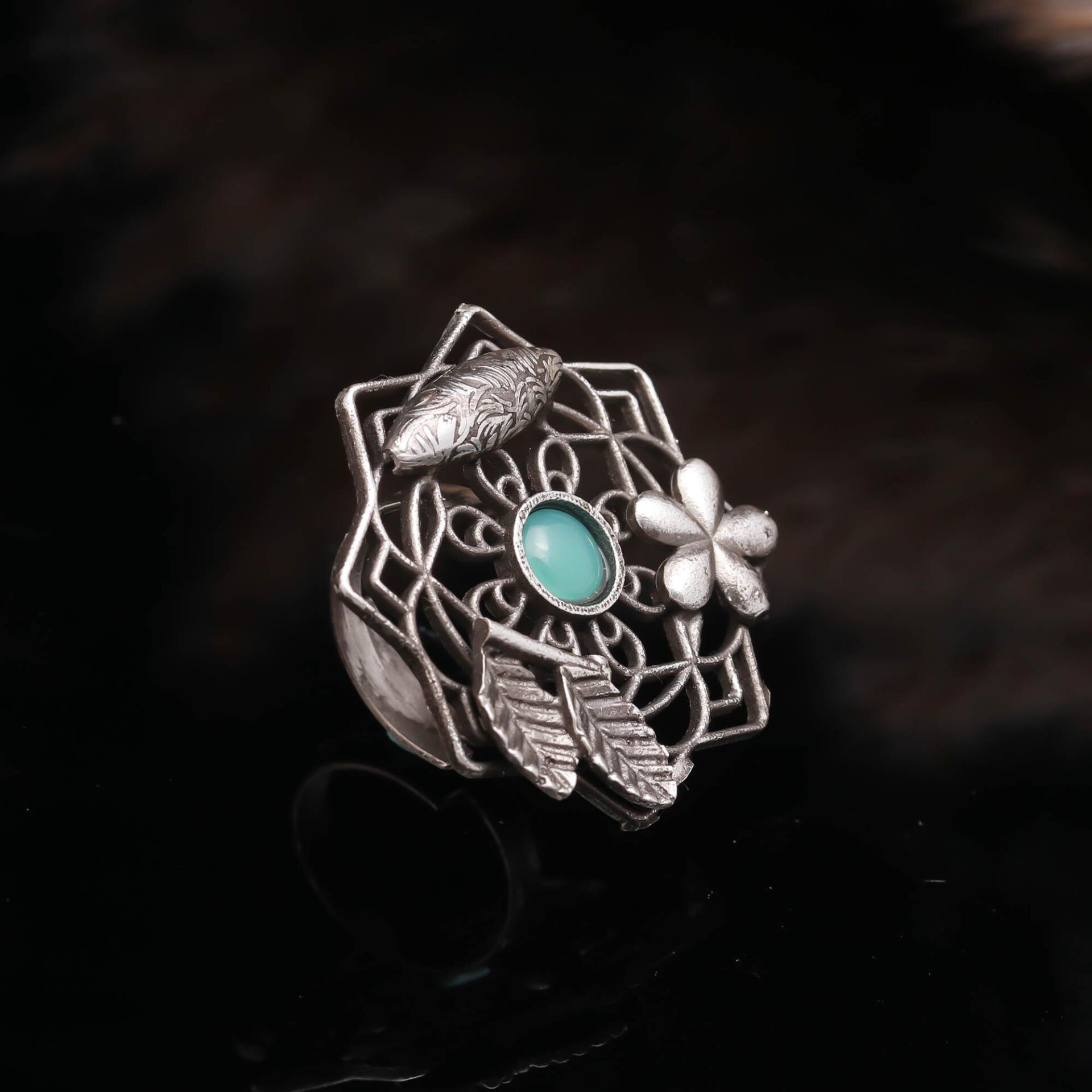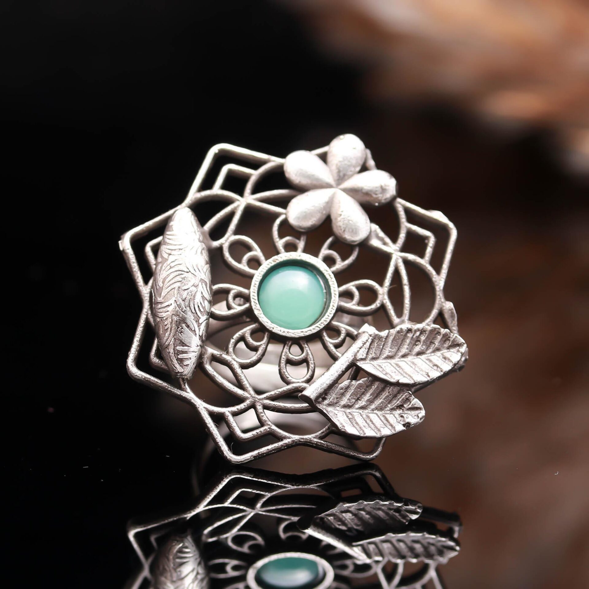 This adjustable ring is a unique blend of tribal, floral, and geometric elements, making it an ideal accessory to add an artistic, eye-catching touch to ethnic or contemporary outfits.